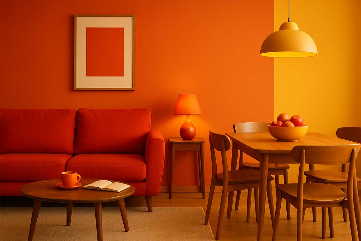 ۱. رنگهای گرم: انرژی و صمیمیت در قلب خانه